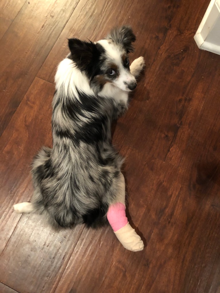 I have this picture of our little Maggie because she and her brother Winston ran out the door I opened yesterday and went on an adventure. Frantically we chased them, and many in our neighborhood participated, and I saw them again, on the other side of a busy street. They don’t know about cars and roadways and they ran out in the street as a truck with a trailer pulling lawn equipment was coming down Eagle Ave. I yelled and the driver didn’t see them. Winston cleared the truck and Maggie was lightly touched by a tire. She spun and screamed. She has a laceration requiring stitches but no broken or crushed bones. One second slower and she’d be dead. Three seconds slower and both pups would have died on the road.